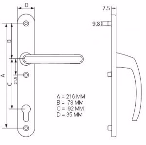 Kľučka na plastové vchodové dvere MTA 35/92/216 3 skrutky